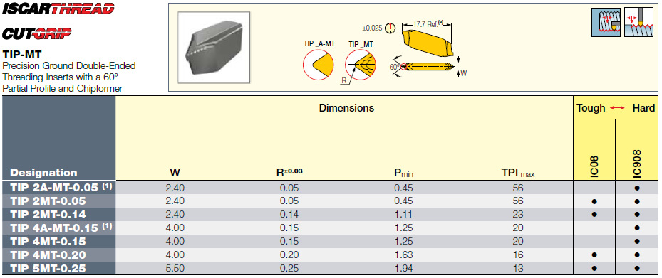 山東伊斯卡刀具批發(fā)TIP 4MT-0.20 IC908數控螺紋刀片
