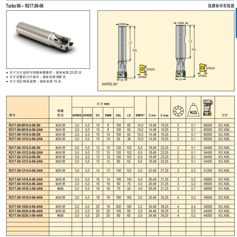 現(xiàn)貨批發(fā)山高數(shù)控刀具R217.69-0810.0-06-2AN方肩銑刀